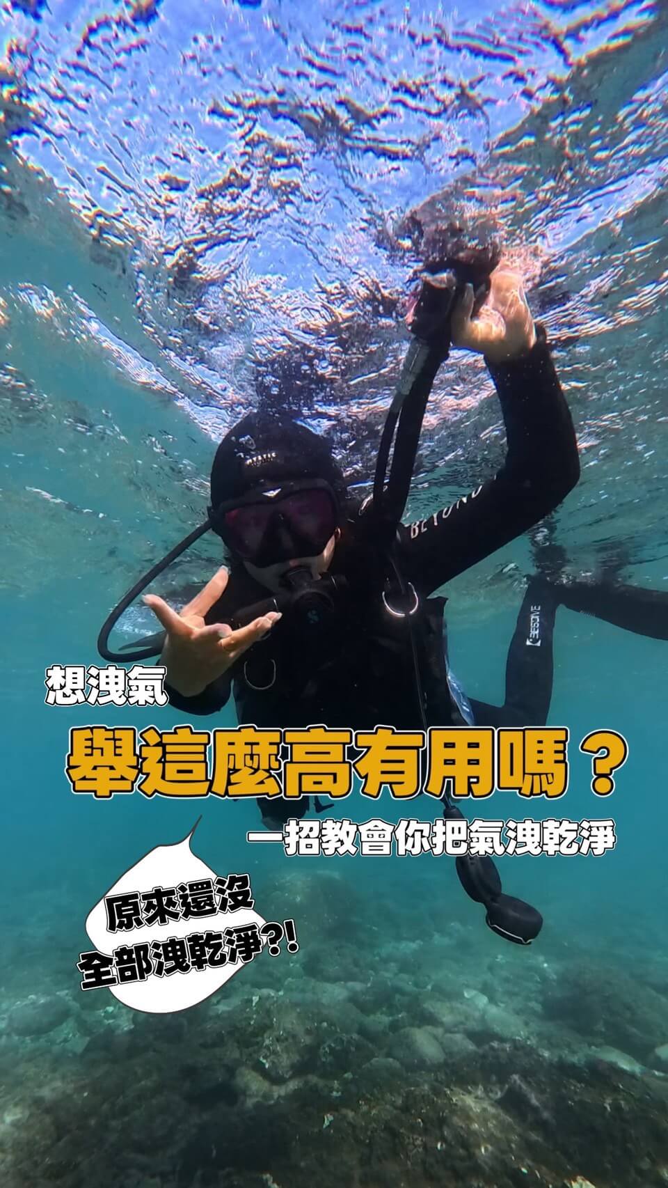 初學水肺潛水的你是否常常有以下困擾!明明已經把手舉到最高氣也都洩光了為什麼教練還在對我比洩氣的手勢…